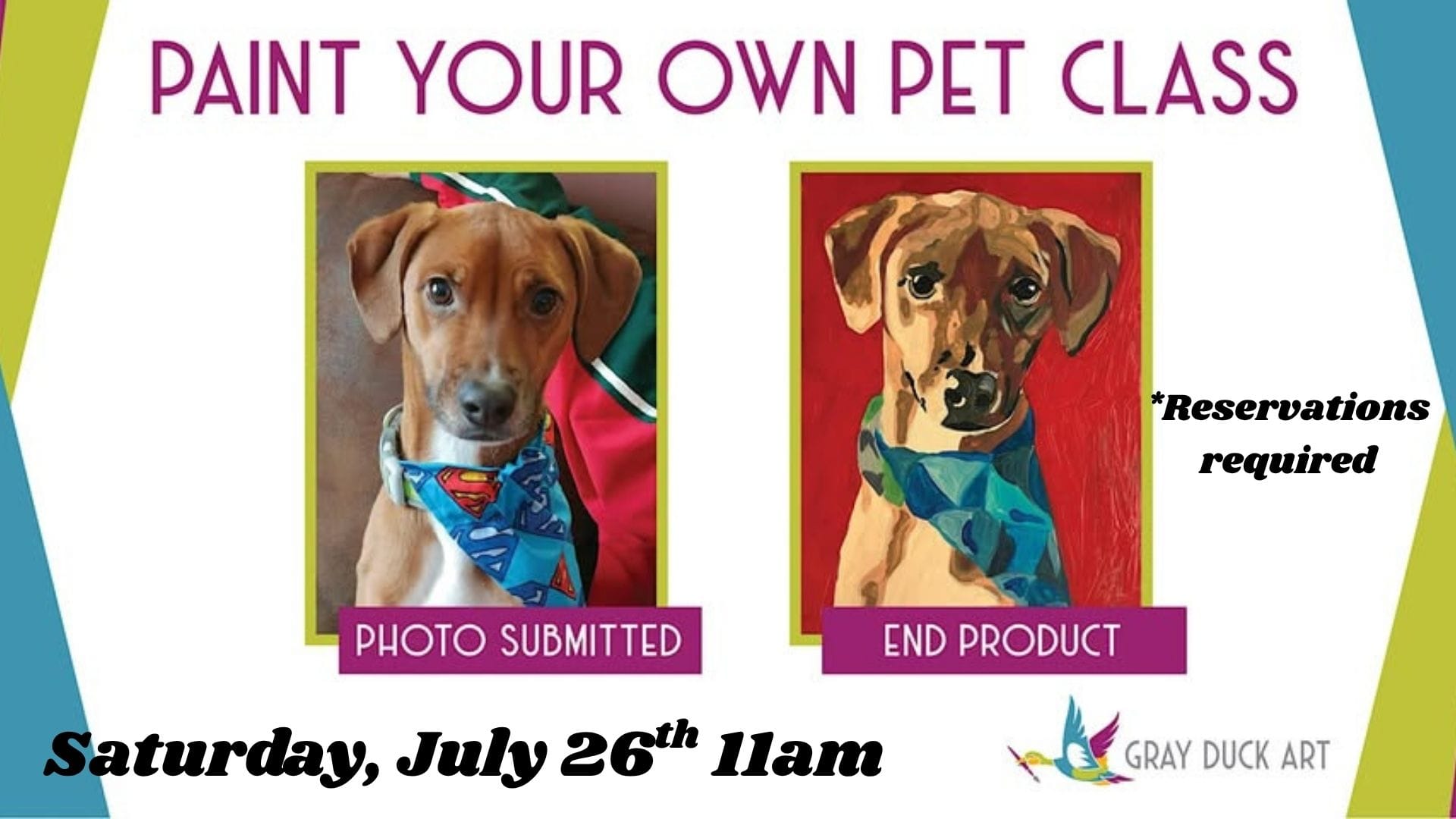 grayduckart.com/class. Photo submissions must be received 3 WEEKS prior to the event to ensure we have time to create your custom artwork.