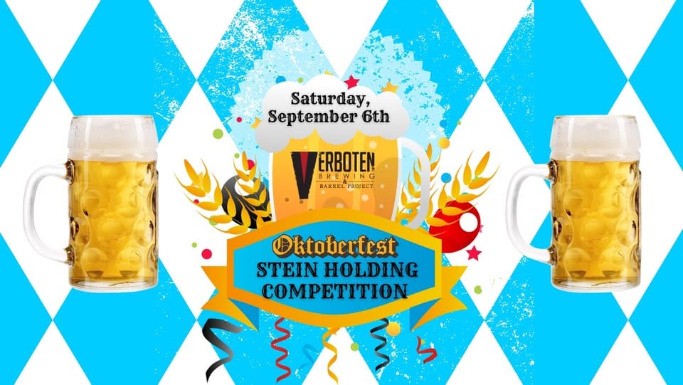 Stein Holding Competition+ Add to Google Calendar+ iCal / Outlook export Tags: beer4all, colorado craft beer, Forbidden Beer, loveland events, oktoberfest, stein holding competition, stein mugs, verboten, Verboten Brewing DateSep 06 2025Expired! Time 2:00 pm LocationVerboten Brewing & Barrel Project127 E. 5th St, Loveland, CO 80537 Category Taproom EventsShare this event