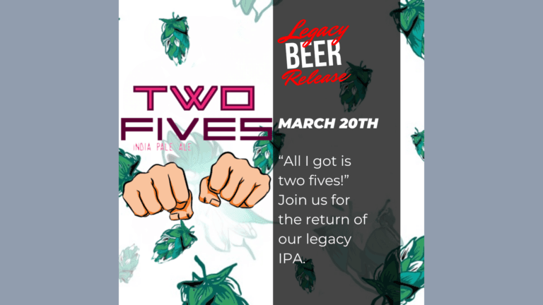March 12, 2026Beer ReleaseLegacy Beer Release: Two Fives“All I got is two fives!” Join us for the return of our legacy American IPA. In honor…Read MoreLegacy Beer Release: Two Fives