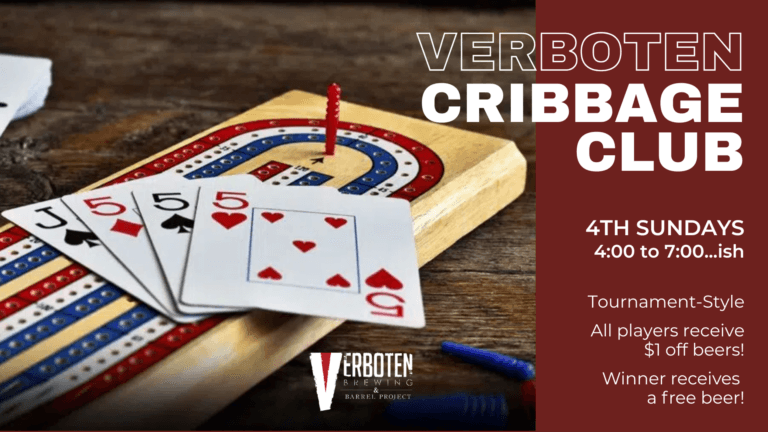 Join us for Verboten’s monthly Cribbage Club! Hosted by our awesome beertender, Steve!Join us every fourth Sunday for…
